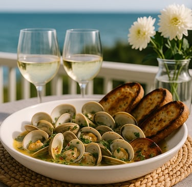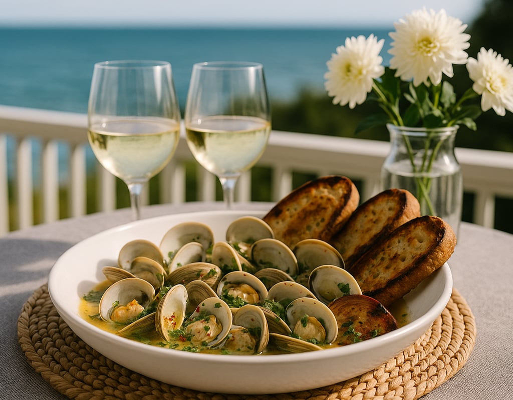 This is the dish my friends and family request time and again: tender clams in a buttery white wine broth, served with garlic bread to catch every bit of that savory goodness!