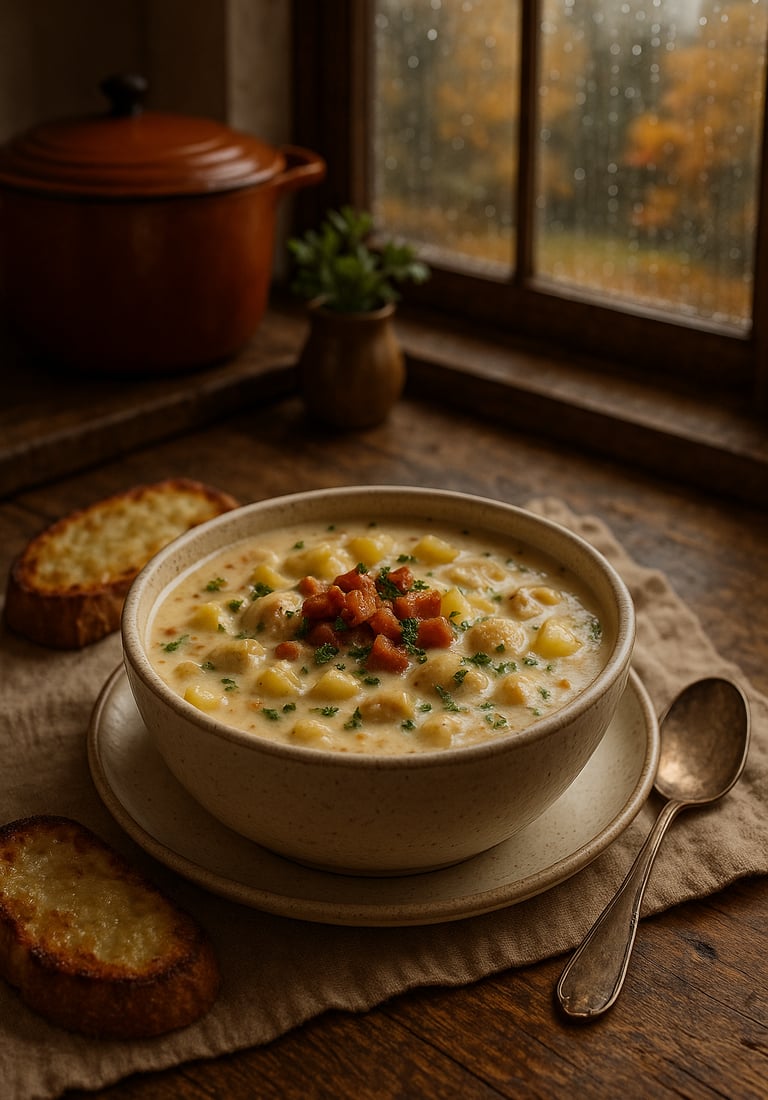 I’ve made this chowder more times than I can count, and it always delivers that perfect mix of comfort and richness. It’s the kind of recipe I turn to when the skies are gray, the windows are fogged up, and something warm and satisfying needs to be simmering on the stove. My not-so-secret twist? I always steam the clams myself. It makes all the difference—the clams taste fresher, and the briny broth they release becomes the soul of the chowder. It's a little extra effort, but the flavor payoff is worth every minute.